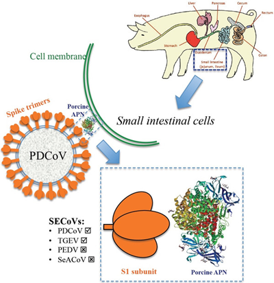 由TGEV引起的豬傳染性胃腸炎(TGE)是一種高度接觸性消化道傳染病,以嘔吐、水樣腹瀉和脫水為特征。TGEV在短期內(nèi)能引起各種年齡的豬100%發(fā)病,死亡率也高,2周齡內(nèi)的仔豬死亡率達(dá)90%-100%,康復(fù)仔豬發(fā)育不良,生長遲緩。由PEDV引起的豬流行性腹瀉(PED)是一種接觸性腸道傳染病,其特征為嘔吐、腹瀉、脫水。臨床變化和癥狀與TGE極為相似,可發(fā)生于任何年齡的豬,年齡越小,癥狀越重,死亡率高,尤以哺乳豬受害最為嚴(yán)重。PDCoV是一種新型豬腸道冠狀病毒,可引起5-15日齡哺乳仔豬腹瀉和嘔吐,迅速脫水,衰竭而亡,發(fā)病率和死亡率高達(dá)50%-100%。2018年5月14日,發(fā)表在美國《國家科學(xué)院學(xué)報(bào)》上的研究顯示,近年來在多國發(fā)現(xiàn)的PDCoV具有在物種間傳播的可能性。